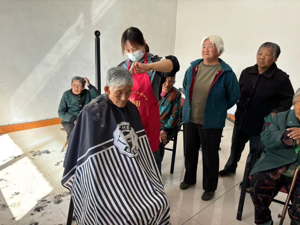 一把剪刀,一份细心,志愿者们化身“托尼老师”,为老人们精心修剪头发。随着一缕缕碎发落下,老人们露出了满意的笑容,仿佛换上了新装,精神焕发。