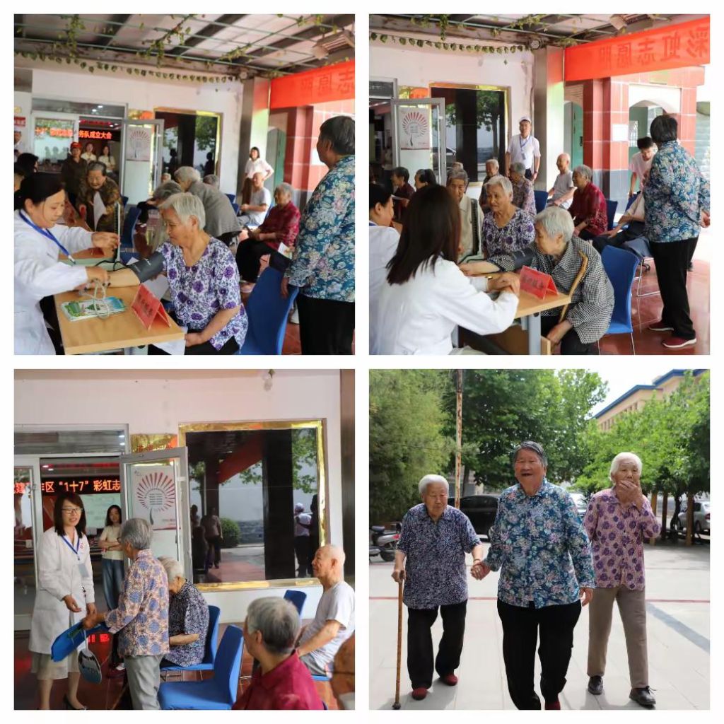 由于本次爱心集市设置在吴家村老年公寓附近,医疗服务摊位群众络绎不绝,老人们相伴前来。除了为老人们测量心率、血压、血糖以外,官庄卫生院的志愿者还为老人进行健康指导,耐心宣传讲解夏季到来需要注意的养生知识。