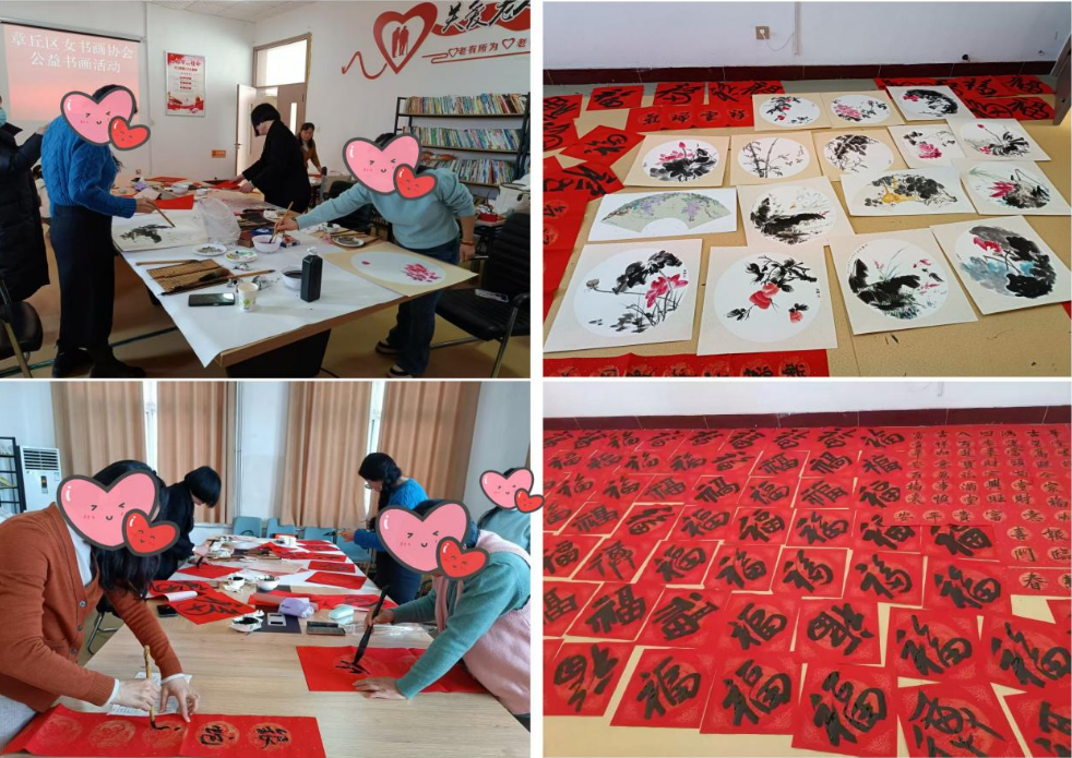 翰墨飘香拓新福,携爱共迎欢乐年。新春佳节日益临近,为弘扬中华传统文化,营造欢乐祥和的节日氛围,文祖、圣井街道社工站分别联合章丘区老干部活动中心、章丘区女书画协会,开展了温馨且有意义的写春联、送福字、绘墨画活动,大家现场挥毫泼墨、运笔细腻,将一幅幅生动又充满寓意的字画,展现的淋漓尽致,现场群众连连夸赞。绣惠街道社工站联合社区组织的新春欢乐荟活动,不仅有写“福”送“福”,更有趣味投壶比赛,现场充满欢声笑语,居民们沉浸在节日的欢乐氛围中,切实感受到了社区大家庭的温馨与和谐。