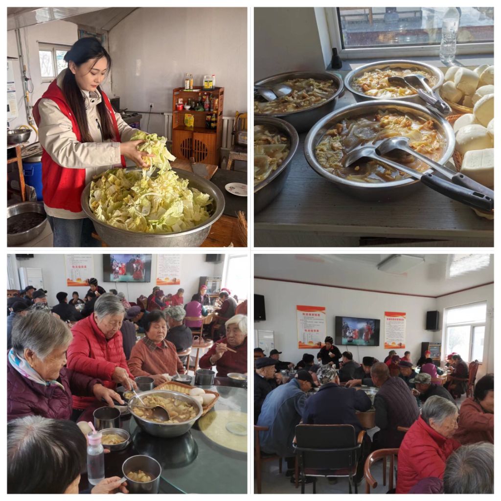 活动开始前,社工与蓝天救援公益服务中心以及权庄北村村委,就助餐时间、就餐人数等事宜进行了沟通。上午9点,志愿者们准时到达幸福院,开始为老人们准备饭菜。一阵忙碌过后,幸福院里已是饭香扑鼻,老人们陆陆续续来到食堂排队打饭,白菜炖豆腐、肉炒芹菜……菜品荤素搭配,深受老年人好评,午餐时间内餐厅座无虚席。