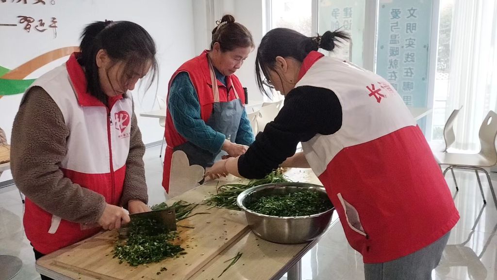 随后大家一同来到活动室包水饺,撸起袖子,洗洗手,都投入到包饺子氛围中,大家分工合作,调陷、和面、揪面剂、擀皮儿,动作娴熟,个个都是包饺子的好能手。