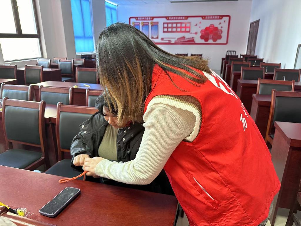活动开始,伴随着艾草香,老人们跟随着社工的步骤讲解,一步步实践操作,不急不慢,认真细致,可以看出每位老人都展现出了浓厚的兴趣。锤头由艾草、豆子掺和组成,包以精美花布,用皮筋相固定,散发淡淡清香。老人们用粗毛线亲手缠绕锤柄,制作过程其乐融融,活动中,社工为大家科普了艾草锤的文化内涵和养生功效。艾草锤作为一种传统的养生工具,具有温经散寒、活血通络的功效,对于缓解冬季寒冷、促进身体健康有着很好的效果。