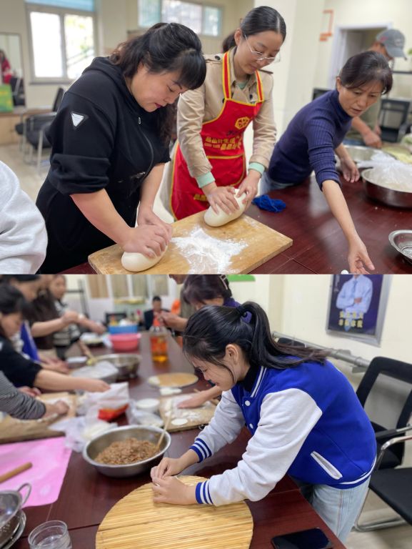 社工与志愿者一起包水饺