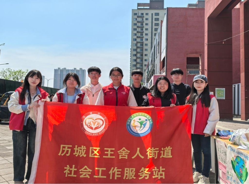 4月19日,王舍人街道社工站联合历城区社工总站、万象新天社区,动员大学生志愿者力量,启动“有点儿意思”公益市集融合宣传项目首次主题宣传活动,活动以儿童友好世界地球日、老年人防诈、AI伴老为主题,聚焦“一老一小”开展特色宣传。