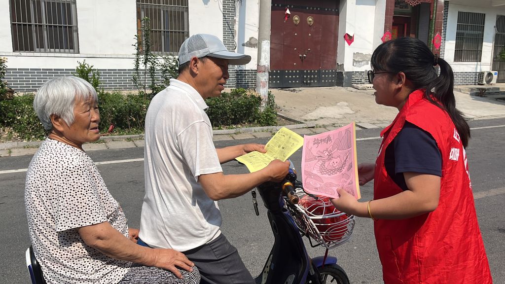 村民们纷纷驻足,接过传单,认真阅读起来。有的村民还和社工们交流起自己对端午节的记忆和感受,现场气氛十分热烈。