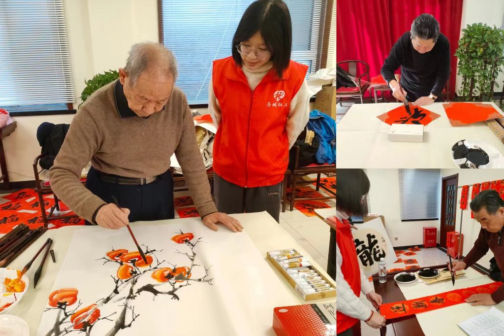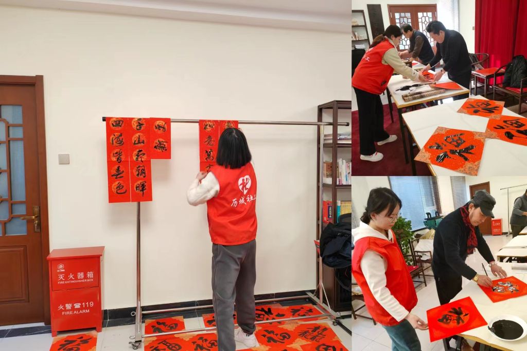 岁末年初,春节将至。为弘扬中华优秀传统文化,丰富社区居民的精神文化生活,营造吉祥如意的春节氛围,1月26日—1月29日,山大路街道社工站联合山大路街道社会事务科在甸柳社区与柳子剧院开展“迎新春,送春联”幸福生活节义写春联活动。