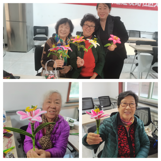 在满足健康需求的同时,社工站也高度重视老年人之间的同辈互动需求,精心设计了一系列手工制作活动,包括艾草锤、香囊、灵芝银耳羹、花束和贺卡等。每项活动都以实用性和趣味性为核心,让老年人通过动手制作获得成就感的同时,也为他们提供了一个相互交流和情感沟通的平台。在制作过程中,老年人们积极分享生活经验,彼此鼓励和支持,逐步建立起温暖、互助的同辈支持网络。这种同辈互动不仅有效缓解了老年人的孤独和焦虑情绪,还帮助他们在活动中结交新朋友,扩大社交圈,构建起和谐、健康的社会支持体系,从而显著提升了他们的生活幸福感和归属感。