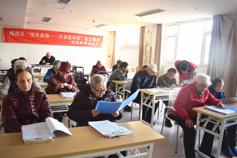 那一首首被老人反复唱起的歌曲是岁月的见证,是老人的青春,更是优良精神文化的传承。为满足老人相关精神文化的需求、丰富住养老人的院舍生活,12月12日众诚悦银龄养老社工项目组在福利中心三楼老年大学开展了本次“岷山千里雪,白杨守北疆”合唱活动。