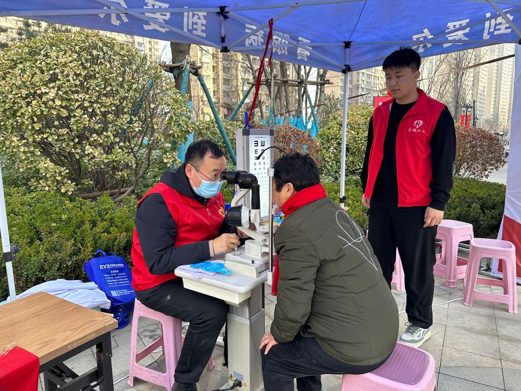 爱尔眼科的医生询问老人日常生活中遇到的眼部健康问题,医务人员通过视力测试、AI眼底照相等科学手段,依次为老年人进行视力检查、眼病检查和白内障筛查,同时普及了白内障、青光眼等眼科疾病的相关知识,解答了关于眼部日常保健相关问题,引导老年人关注视力健康,做到眼科疾病早发现、早治疗。