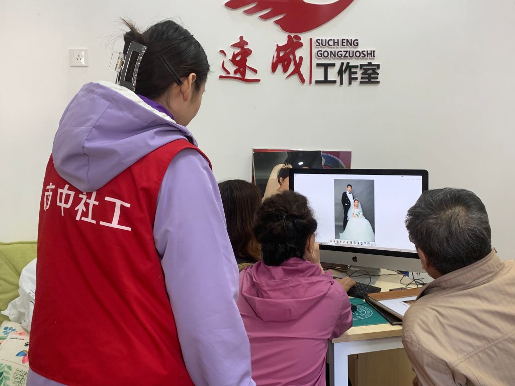 活动现场,社工向老年人及在场工作人员讲解了重阳节传统与习俗,让在场老年人及工作人员更加了解和热爱非遗文化。随后,社工协助工作人员一同为老人挑选穿戴婚纱首饰,整个现场洋溢着幸福的味道,感染了现场的每一个人。“阿姨挽着叔叔的胳膊”“叔叔搂一下阿姨的腰”“来,叔叔阿姨看镜头笑一笑”随着甜蜜温馨的笑容在相机中定格,一张张新拍的“结婚照”让8对长者夫妻又浪漫了一回。“此次活动,既弘扬了重阳节敬老的传统习俗,又为我们老人重温了以往的情感和往日的幸福岁月。非常感谢社工站和社区。”75岁的刘大爷激动的表示。