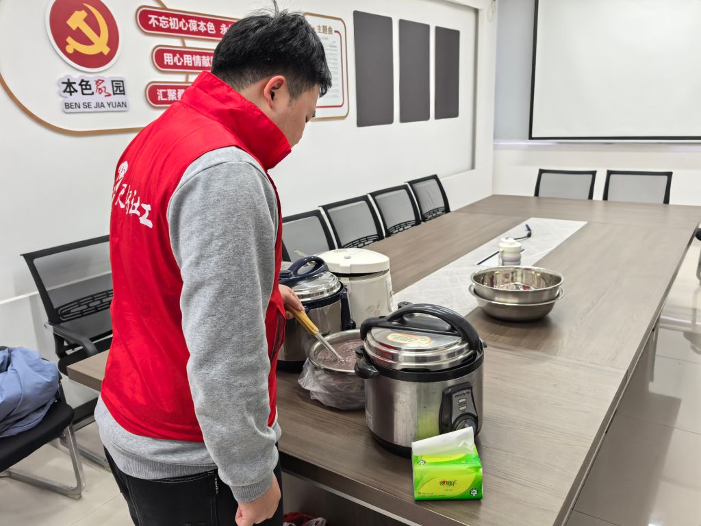 走访活动开始前,社工们就忙碌起来,连同志愿者齐心协力煮制了一锅锅香浓的腊八粥,还亲手包出象征团聚的水饺,随后将这些饱含心意的食物仔细打包,同时还准备了一些常用药品,以备老人不时之需。