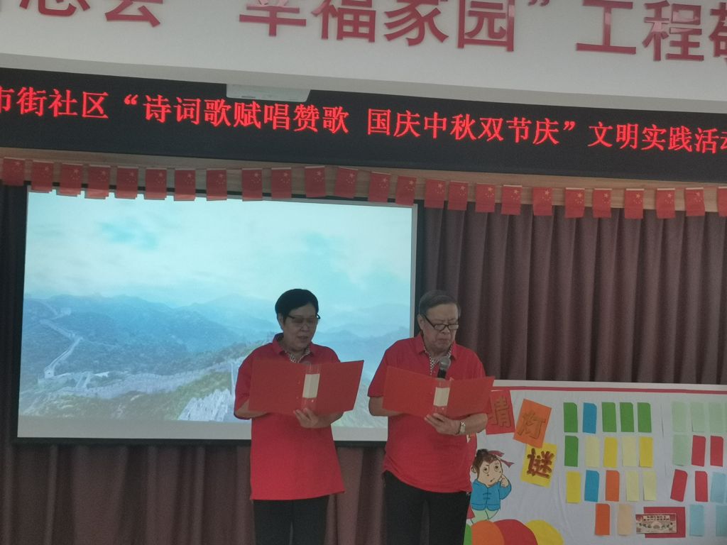 为丰富社区居民的文化生活,增强居民之间的联系与沟通。9月26日上午,制锦市社工站协助制锦市街社区举办“诗词歌赋唱赞歌 国庆中秋双节庆”文艺演出活动。