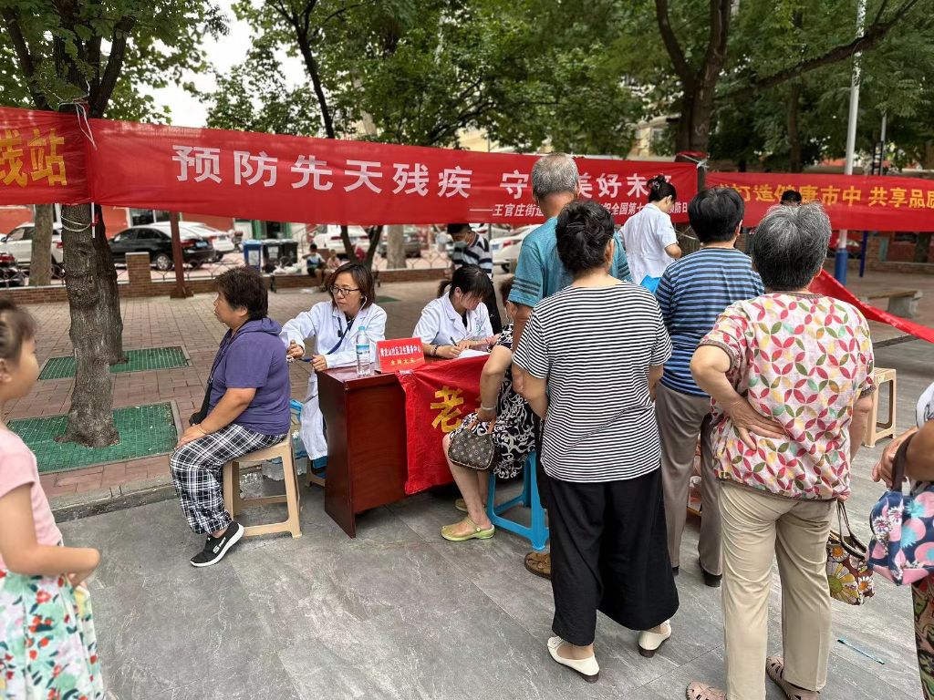 为加强残疾预防宣传教育,增强全社会残疾预防意识和预防能力, 8月24日,王官庄街道社工站、王官庄街道残联、九区社区联合青龙山社区卫生服务中心及王官庄街道办事处东区服务站开展了“预防先天残疾,守护美好未来”第七个全国“残疾预防日”宣传活动。