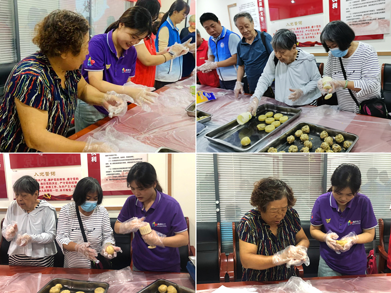 社工带领居民制作月饼