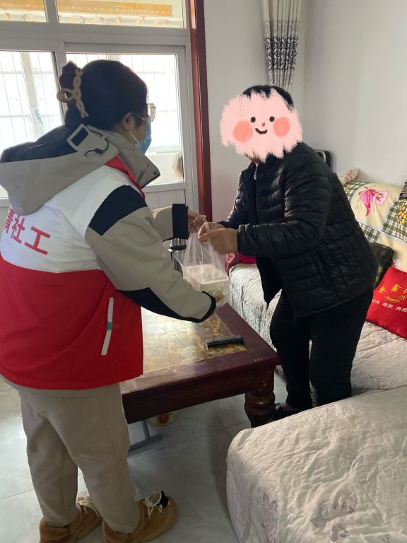经过一个上午的忙碌,饺子全部煮好,社工和志愿者将煮好的饺子打包在餐盒内,分组送到桃园村老年人家中,一起分享节日的喜悦,并与老人们交流搬迁以后生活的变化,叮嘱他们注意保暖,有困难可以及时联系社工。“感谢你们!逢年过节的都能想着我!我心里暖融融的!”收到饺子后,张大娘激动不已。热腾腾的饺子是一份象征,暖胃更暖心。
