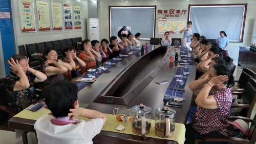 现场摆上茶具,准备好茶叶,烧水壶,居民陆陆续续的签到就座,准备上课!首先曹卉老师给大家从“识茶、品茶、茶礼仪、茶与健康、茶与修养”等有关茶文化进行了细致的讲解。大家都聚精会神的听着。然后由白晓香老师为大家进行茶疏的讲解示范。一开始先教大家如何调整坐姿,以保证品茶的时候身体处于放松的状态。接下来,洗茶、冲茶、淋罐、洒茶,一举一动都是美的享受,时间也在老师轻柔的讲述中慢了下来。大家也都安静坐着按照老师的要求慢饮细酌,享受一次心灵的清新之旅。七杯茶过后,大家都说全身的血液都流动开了,确实身体很舒服!