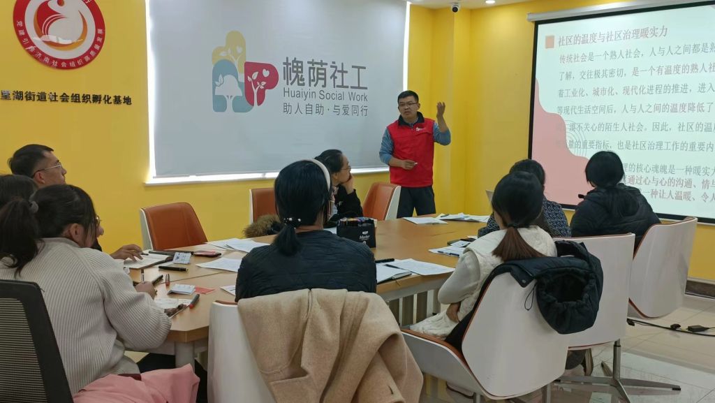 本次培训以“社区(助理)社会工作师增能”为主题,在轻松开放的培训氛围下,驻站社工引导大家通过头脑风暴一起回忆社会工作关键词、依次分享“我的社工词云图”、进行“社工路上·未来的我”职业生涯展望、开展提升社区“暖实力”案例分享、掌握“同一个世界 不一个社区”社区精准分类理论,并就“党建引领物业融入基层治理”课题进行了实操练习,通过小组工作的方式切实提升辖区社区工作者运用社会工作专业知识和技术的能力,着力打造一支政治素质好、业务能力强、服务水平高的社区社会工作人才队伍。