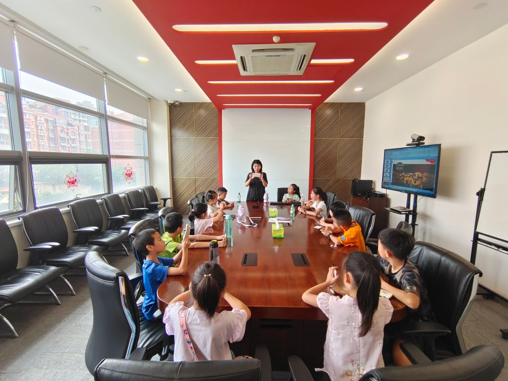 参观一楼空间后,工作人员带领小营员们来到二楼的办公空间,参观银行工作人员的办公环境,了解银行的日常工作及人员分工。接着在会议室内,银行工作人员先是利用图文视频的形式,带领小营员们了解人民币纸币,并耐心细致地为在场孩子们讲解了银行的发展历史和功能。银行工作人员引导小营员们学习点钞,一遍遍的尝试让大家感觉到原来点钞也是一门大学问,纷纷体验到“点钞基本功”是勤学苦练而成的积累,在看似平凡的细节里,蕴含着细致严谨的职业精神。下一环节,工作人员以故事的形式向大家科普了金融诈骗的相关知识,并通过情境演绎的形式提醒大家注意保护财产安全,过程中小营员们争先恐后的“上当受骗”,总结归纳时,小营员们纷纷表示将提高警惕不再上当。最后,小营员们带着满满的收获与成长同大家合影留念,并由浙商银行行长颁发纪念证书。