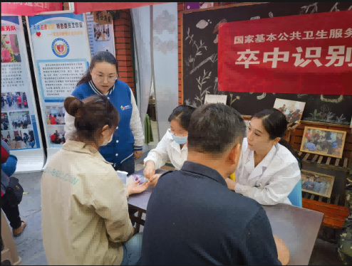 图 1 青年公园街道社会工作服务站联动社区卫生院开展健康查体服务