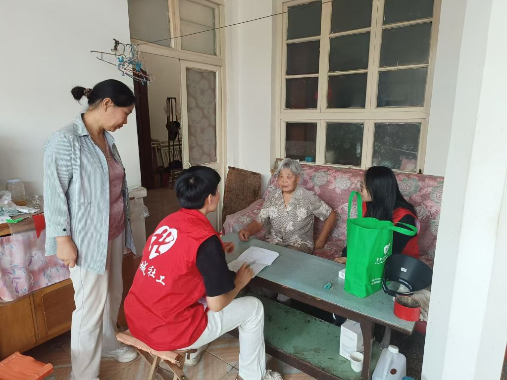 在访谈中,社工运用支持性、引领性技巧等技巧与村民进行深入交流,了解他们的家庭生态系统、心理状态和生活状况,收集相关资料,深入了解其需求。在来到李奶奶家中时,社工了解到李奶奶肢体四级残疾并患有高血压,需要定期服药,丈夫年初因病去世,现在独自一人照顾百岁的婆婆,丧偶的悲伤和高龄照顾婆婆的压力使其更对以后的生活忧心忡忡。社工对李奶奶的焦虑情绪进行安抚,提醒其日常按时服药,控制病情,保持乐观平和的心态,平时注意安全,保重身体。李奶奶对社工的安慰表示很受用,但还是无法完全消除负面情绪。