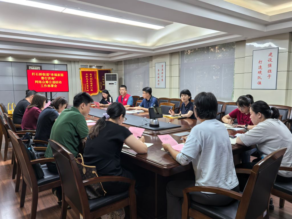 2024年8月19日,杆石桥街道办事处召开“幸福家园 善行济南”网络众筹公益活动工作部署会。会议旨在弘扬慈善事业精神,动员社区力量,积极参与“幸福家园 善行济南”网络众筹公益活动,推动各社区的设施提升、扶老助老等项目实施,提升居民的生活品质,增强为困难群体服务的能力和水平。会议由办事处副主任刘德华主持,各社区书记及科室相关人员参加。