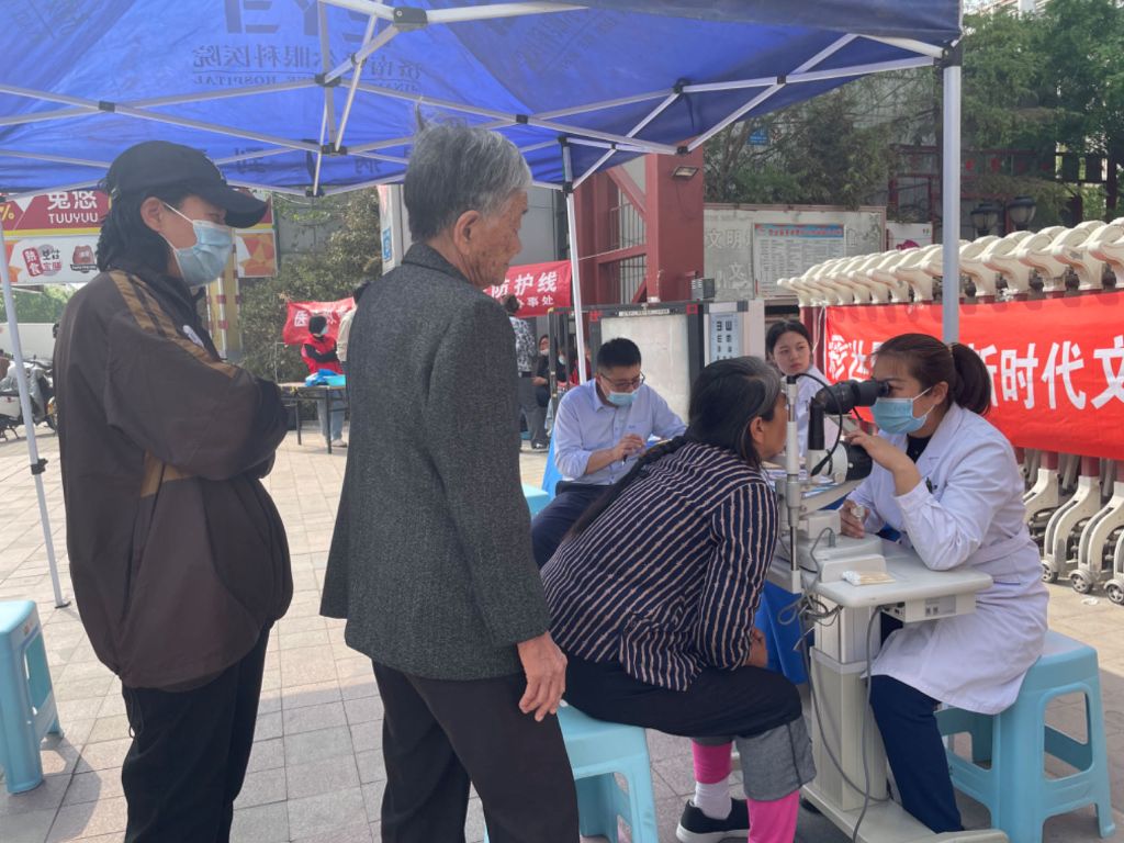 在活动开始前,工作人员积极对接义诊流程、布置引导参加义诊的居民有序排队。对于一些因检查项目排队时间较长感到焦虑的居民,提供情绪支持,通过沟通和安慰帮助他们放松心情,确保检查的顺利进行,活动过程中,医生们通过测试视力、验光等科学手段,根据每个人的状况,向居民耐心细致地讲解注意事项,并给出下一步防治措施和治疗建议,做到眼科疾病早发现、早预防、早治疗。