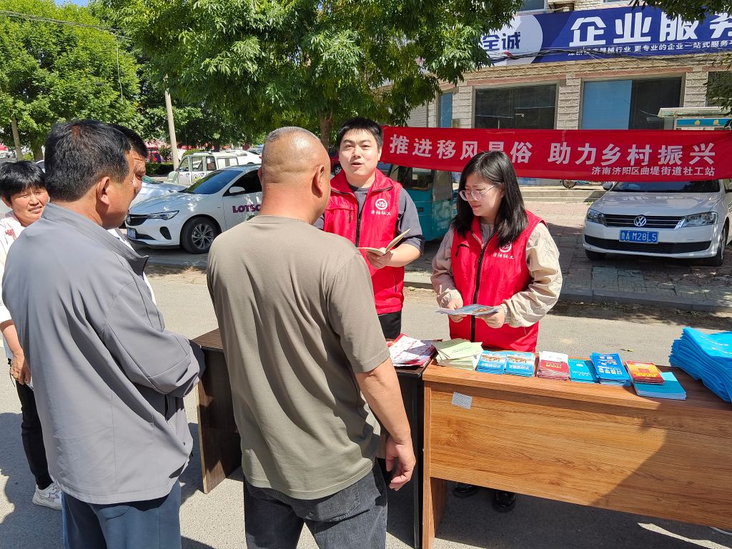 为持续深入推进移风易俗,以实际行动倡导文明新风。引导群众讲文明、树新风,提高居民的文明道德修养,激发群众自治道德氛围。曲堤街道社工站开展“推进移风易俗,树立文明新风”宣传活动。