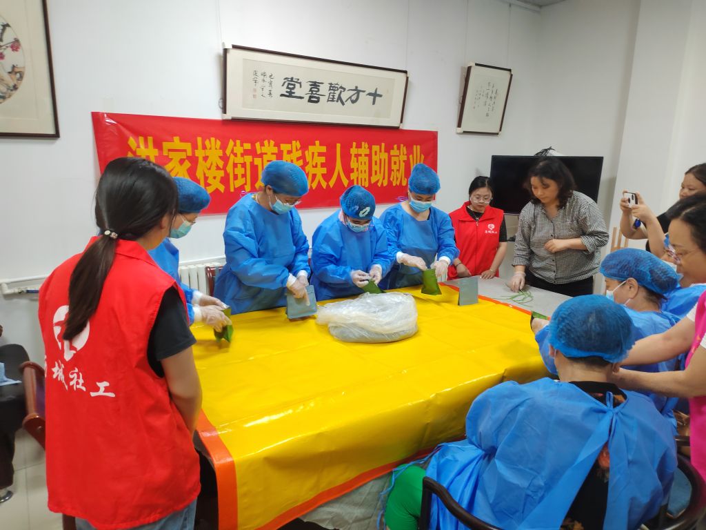 为强化残疾人辅助性就业功能,进一步促进洪家楼街道残疾人就业,拓宽学员就业渠道,增强学员劳动就业技能,洪家楼街道社工站联合街道残联、洪家楼社区日间照料中心邀请手工老师老师,为辖区残疾人开展了辅助性就业培训,帮助残疾人提高辅助就业技能,实现就业增收。