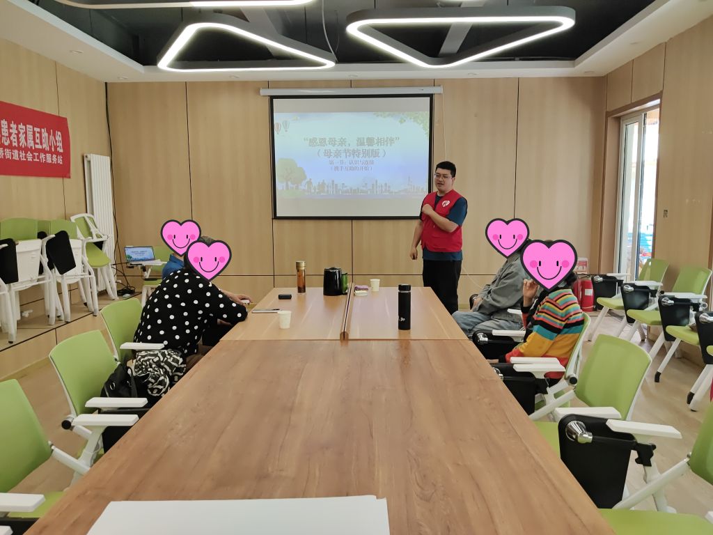 神障碍患者家属互助小组活动在母亲节启动,首次聚集时,社工站通过破冰游戏和建立小组契约,帮助组员们熟悉彼此,建立初步的信任和了解。在这个阶段,社工用通俗易懂的语言向组员讲解什么是小组,澄清此次小组的目的和意义,确保每位组员都明确自己的期望和小组的方向。
