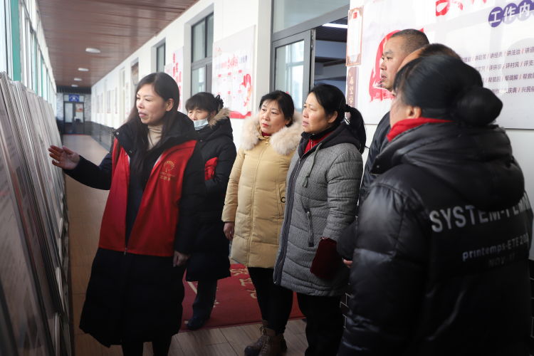 爱心义诊的志愿者为前来的群众提供义诊服务,量血压的同时解答他们在健康方面的疑问,为他们讲解冬季保养注意事项。还有部分群众正饶有兴趣的听志愿者介绍村内自行种植加工的草莓、蒲公英茶等特色农产品。