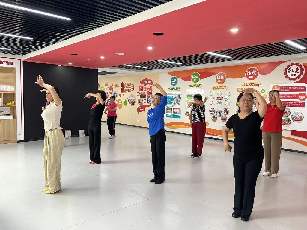 本节课结束后,社工鼓励组员们分享一下这节课的收获,吕阿姨说:“老师特别耐心,教的特别好,我很高兴能加入这个形体舞的学习班,等我学会了以后,我带着我的姐妹们一起跳!让她们都学习形体舞!”田阿姨也高兴地说:“等着社区搞活动的时候我们这几个姐妹们一起上台跳!”社工表示社工站往后会经常举办此类活动,给大家提供平台展示自己,通过开展活动让组员们能够促进邻里交流,提升自己,满足她们求友、求乐的晚年生活。