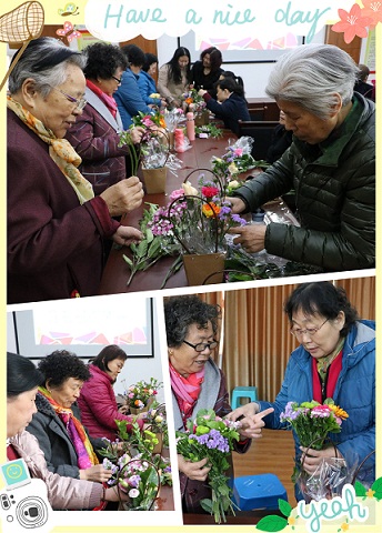活动还特別邀请了经验丰富的花艺师介绍鲜花常识,介绍日常生活中鮮花的保养方法,以及传授基本的插花技巧。现场的阿姨们热情高涨,聚精会神、一步一步地跟着花艺老师学着插花。大家在老师地指导下,讲究色彩搭配,错落有致,普通的花草、枝叶经过大家的精心修剪,加工,变成了一件件令人赏心悦目的艺术品。