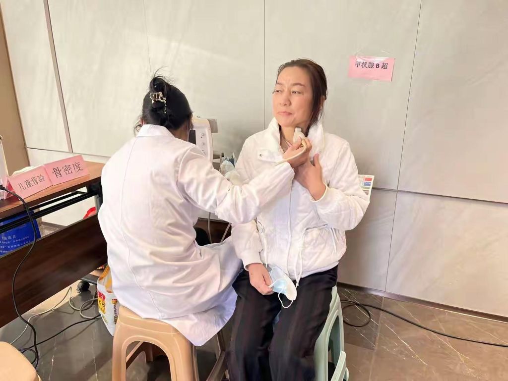 在甲状腺筛查区域,经验丰富的医护人员结合先进的检测设备,对甲状腺功能、形态等全方位“把关”。有的居民起初略带紧张,医护人员便用通俗易懂的话语,解释甲状腺疾病的常见症状、发病诱因以及早发现早治疗的优势,缓解大家的焦虑情绪。当发现个别居民甲状腺指标稍有异常时,医护人员当即叮嘱复查事宜,并提供后续就医指导,这份严谨负责,让小区居民们深感安心,也对甲状腺健康防护有了全新认识。