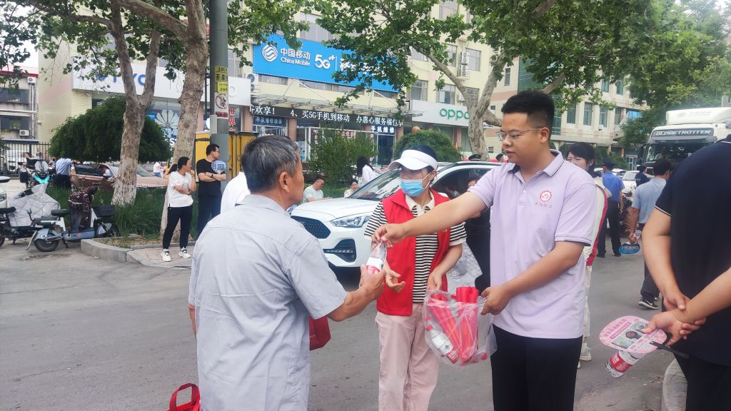 一年一度的高考,莘莘学子迎来了人生中重要的一场“大考”。为给广大考生营造良好的候考环境,用实际行动弘扬志愿服务精神,6月7日,济北街道社工站志愿服务队在高考期间开展爱心助考志愿服务活动,为济北中学的考试及家长提供爱心供水,为他们的梦想保驾护航。