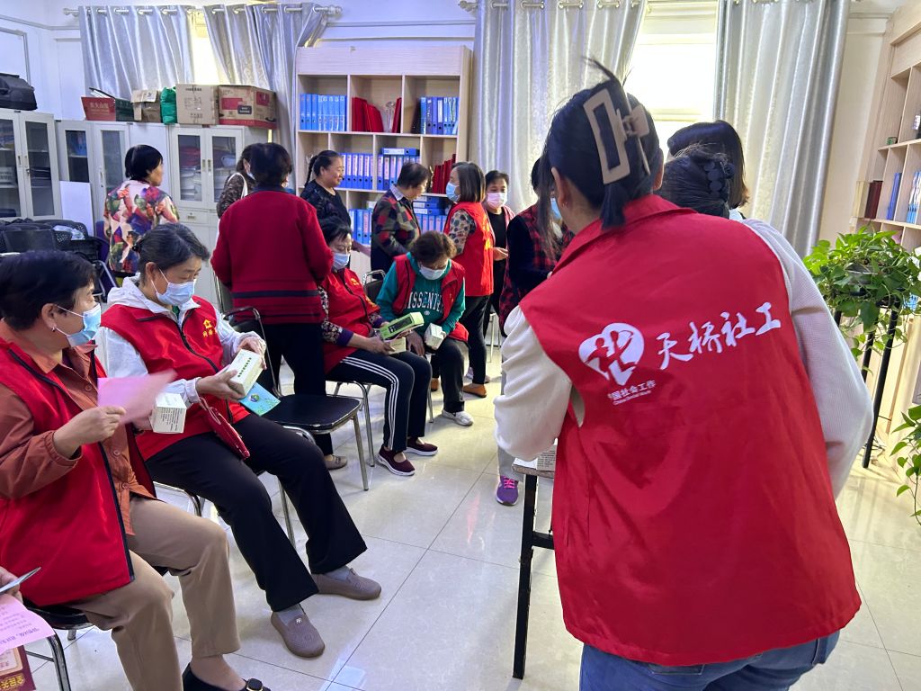 活动开始前,社工站社工对减塑降塑基本情况以及活动理念进行简单的阐述,并向社区居民发放了倡议书。活动中专家郭教授用生动的案例深入浅出地讲解使用普通塑料袋的危害,科普了减塑降塑的重要性。