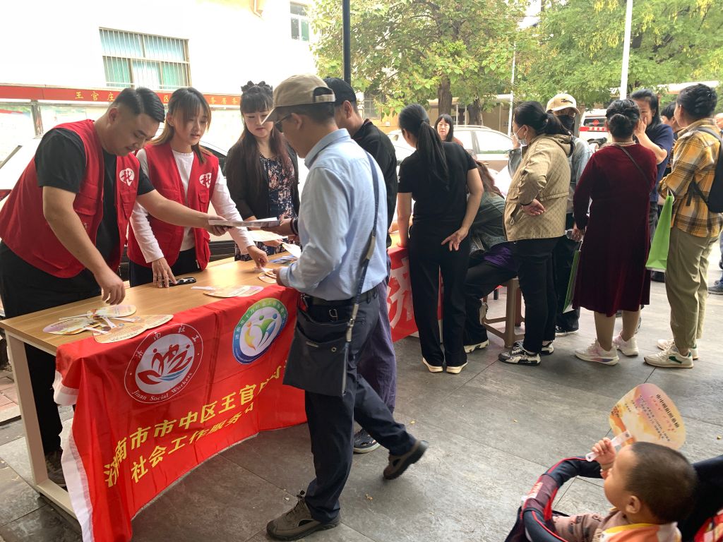 在重阳节来临之际,为增强老年人健康意识和自我保健能力,提高健康服务的普及率,10月11日,王官庄街道社工站链接济南市精神卫生中心,联合九区志愿者在社区广场上举办了一场老年人健康义诊活动,旨在为社区的老年朋友们送上健康与关怀,共同守护心身健康。