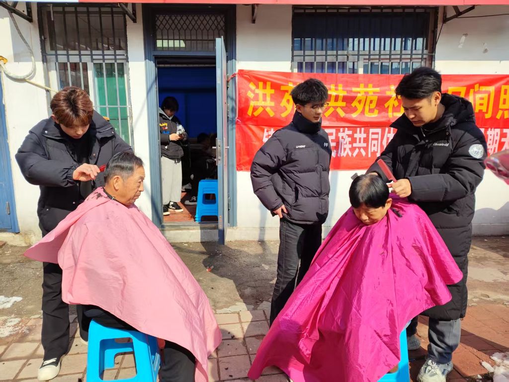 在“敬老行” 环节,“阳光义剪”志愿服务队的理发师志愿者们早早带着专业理发工具来到社区活动室,现场迅速布置妥当,理发椅、围布摆放整齐,电推子嗡嗡作响,现场气氛热烈,意义深远;山东建筑大学的学生志愿者们则分组走进老年人家庭,陪他们聊天、帮助打扫卫生、检查电器安全等,用实际行动传递关爱与温暖。老人们纷纷表示,感受到了浓浓的关怀,仿佛看到了自己孙辈的身影。
