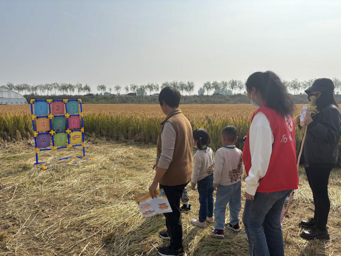 在正中靶心比赛项目中,参赛者们手拿沙包,全神贯注地瞄准靶心。随着沙包一个个的掷出,靶心上不时被一个个五颜六色的沙包打中,引来阵阵欢呼与掌声。接下来的稻田飞盘,参赛者们需在稻田中奔跑、跳跃,将飞盘准确投掷给队友,既考验了团队协作,又体验了在自然环境中运动的独特魅力。稻田的绿意与飞盘的色彩交相辉映,构成了一幅动人的秋日画卷。本次运动会还设置了亲子互动环节,如彩绘草帽,让家长和孩子们在共同参与中加深情感交流,享受亲子时光的美好。在创作过程中,家长们耐心地指导孩子调色、构图,孩子们则兴奋地分享自己的创意和想法,不时传来阵阵欢声笑语。通过这样的共同创作,不仅增进了亲子间的情感交流,也让孩子们在创作中学会了合作与分享,收获了成长的快乐。