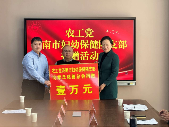 (图为农工党济南市妇幼保健团支部向章丘慈善总捐赠善款一万元,定向救助普集街道五名困难残疾儿童)