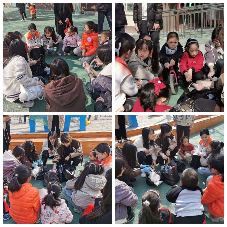 两组小朋友都收获满满,大家围在一起共同讨论垃圾的分类,比如塑料是属于什么垃圾、纸屑属于什么垃圾、木签属于什么垃圾、电池属于什么垃圾……