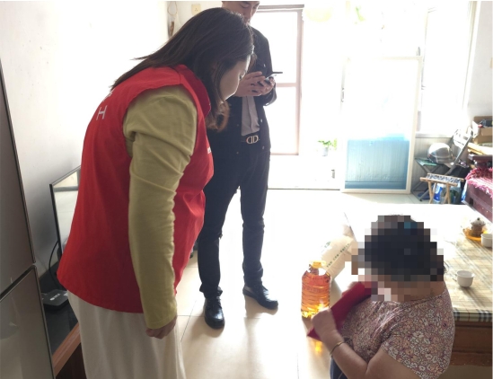 “阿姨,最近身体怎么样?”“这几天下雨天气转凉,一定要多穿点衣服”……在探访过程中,社工与老人进行了亲切的交流,详细询问了老人的身体状况、生活情况、生活需求、精神情绪等,并建立“一人一档”信息档案。通过拉家常的方式,深入挖掘辖区居民的实际需求,充分协调辖区各类资源,切实解决困境群体的“急难愁盼”。同时,社工为老上送上慰问金、面粉和食用油,以实际行动践行了社会关爱与责任,让老人们在感受到社会温暖的同时,也增强了他们的幸福感与安全感。