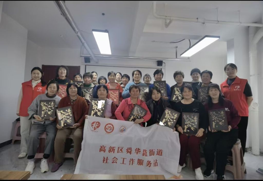 在19个国际社工日到来之际舜华路街道社工站来到祥泰社区居委会为老年人举办了一场别开生面的金箔纸手工活动。旨在丰富老年人的精神文化生活,增强他们的社交互动,同时展现在老年服务中社工的关怀与陪伴,促进居民对专业社工的认识。
