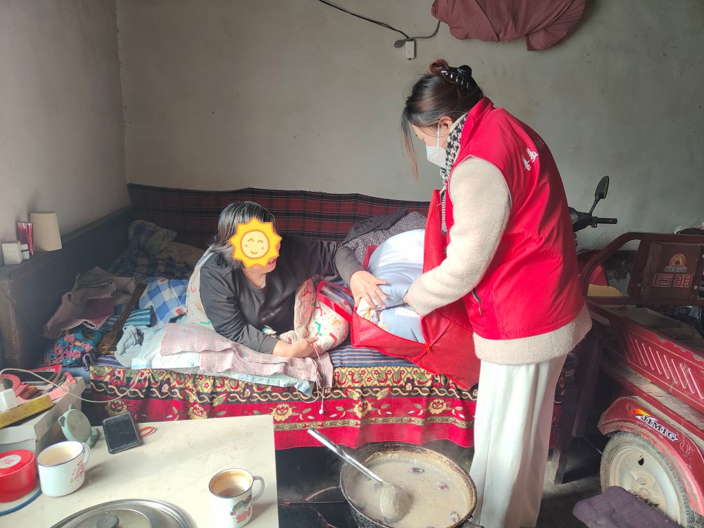 在入户探访中,社工们来到了赵大妈家中,为其送上米、面、油及棉被等生活物资,与其进行了亲切的交谈,详细了解了她的身体状况、家庭生活情况及需求,并鼓励其坚定信心,保持乐观向上的生活态度。由于赵大妈常年卧床,女儿在外地工作,志愿者便对赵大妈家中水、电、取暖炉等设施进行了检查,排查各种安全隐患,叮嘱她在日常生活中注意用火安全,有困难及时联系,我们将尽最大的努力帮助解决。