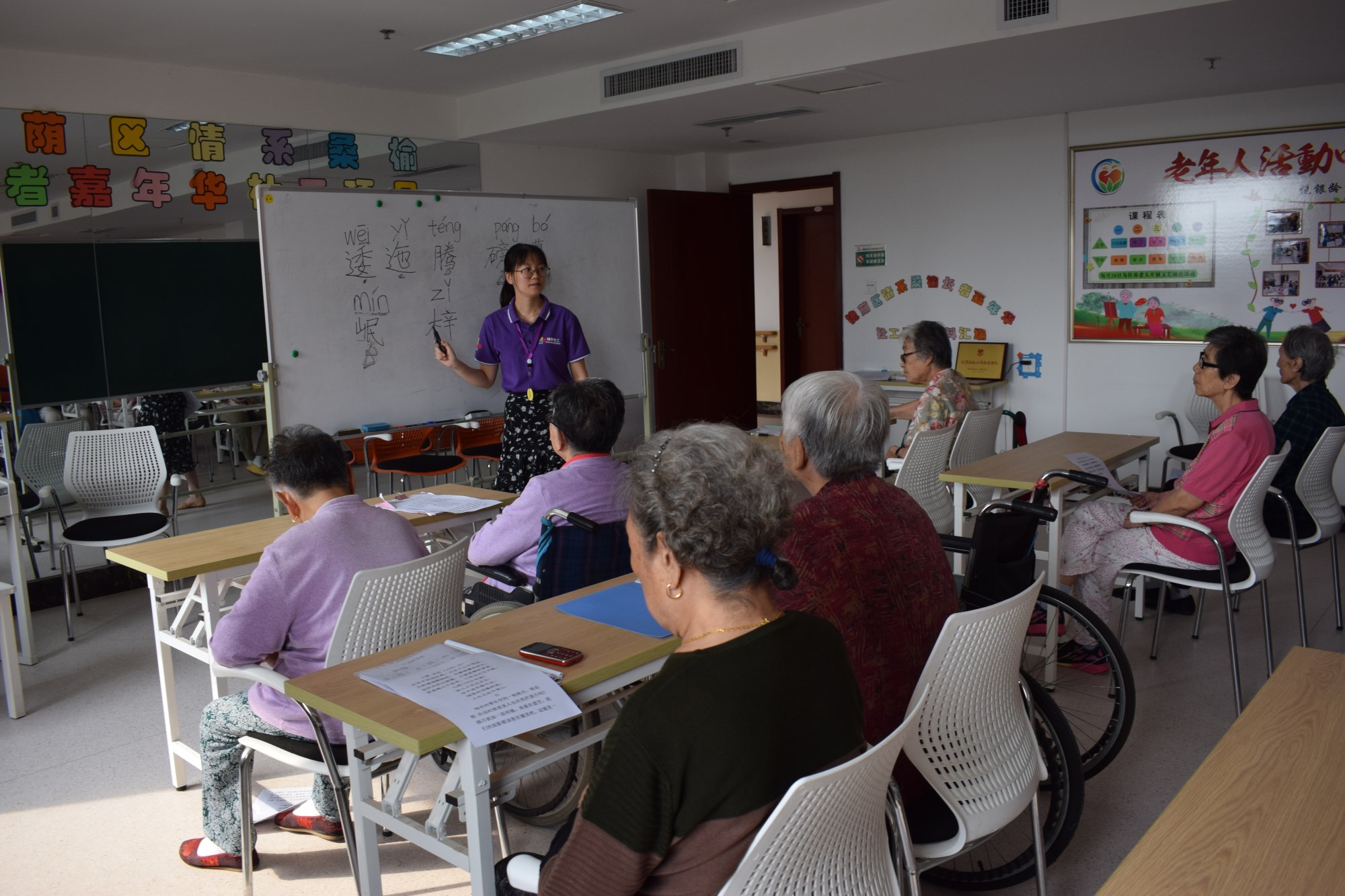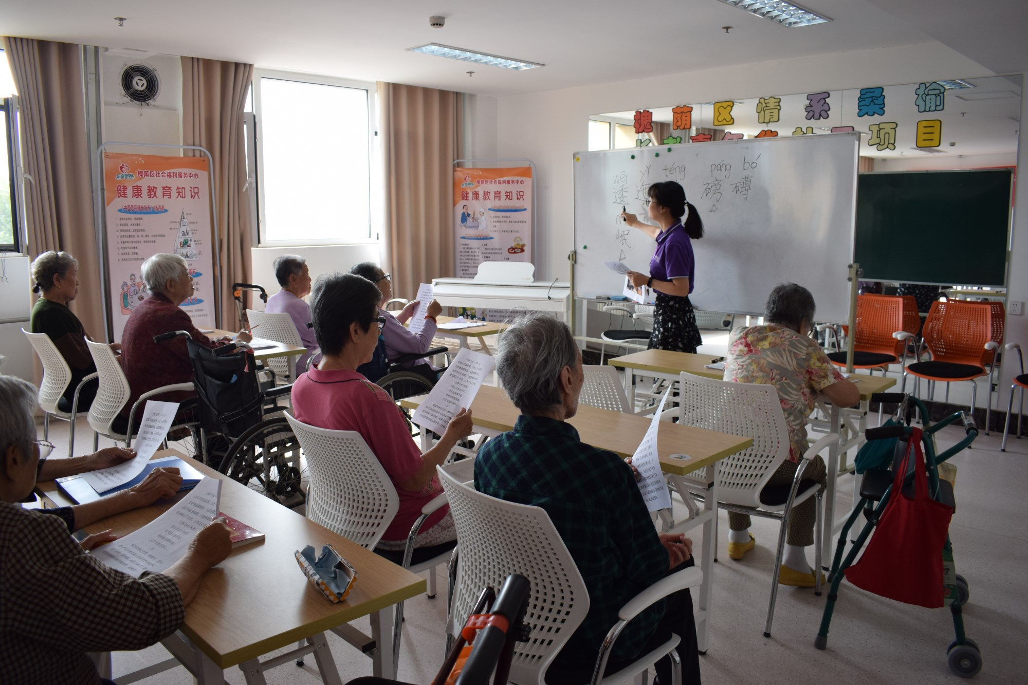 毛泽东作为中国的开国领袖,带领中国走向新纪元,在老一辈人的心中拥有不可撼动的地位,其领导的二万五千里漫漫长征路的胜利更是中国革命史上浓墨重彩的一笔。9月13日上午9点悦银龄养老社工项目组在福利中心三楼老年大学开展了“重温红色经典”诗词学习活动。
