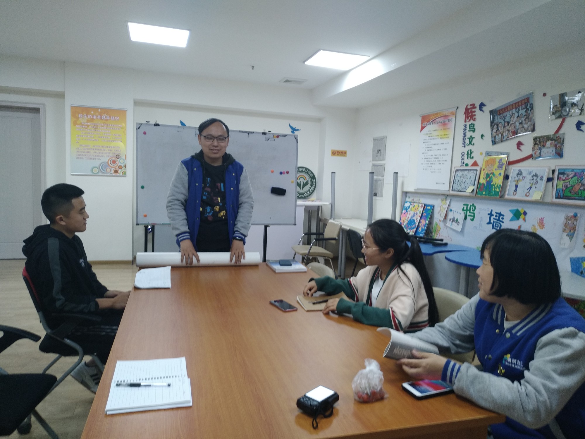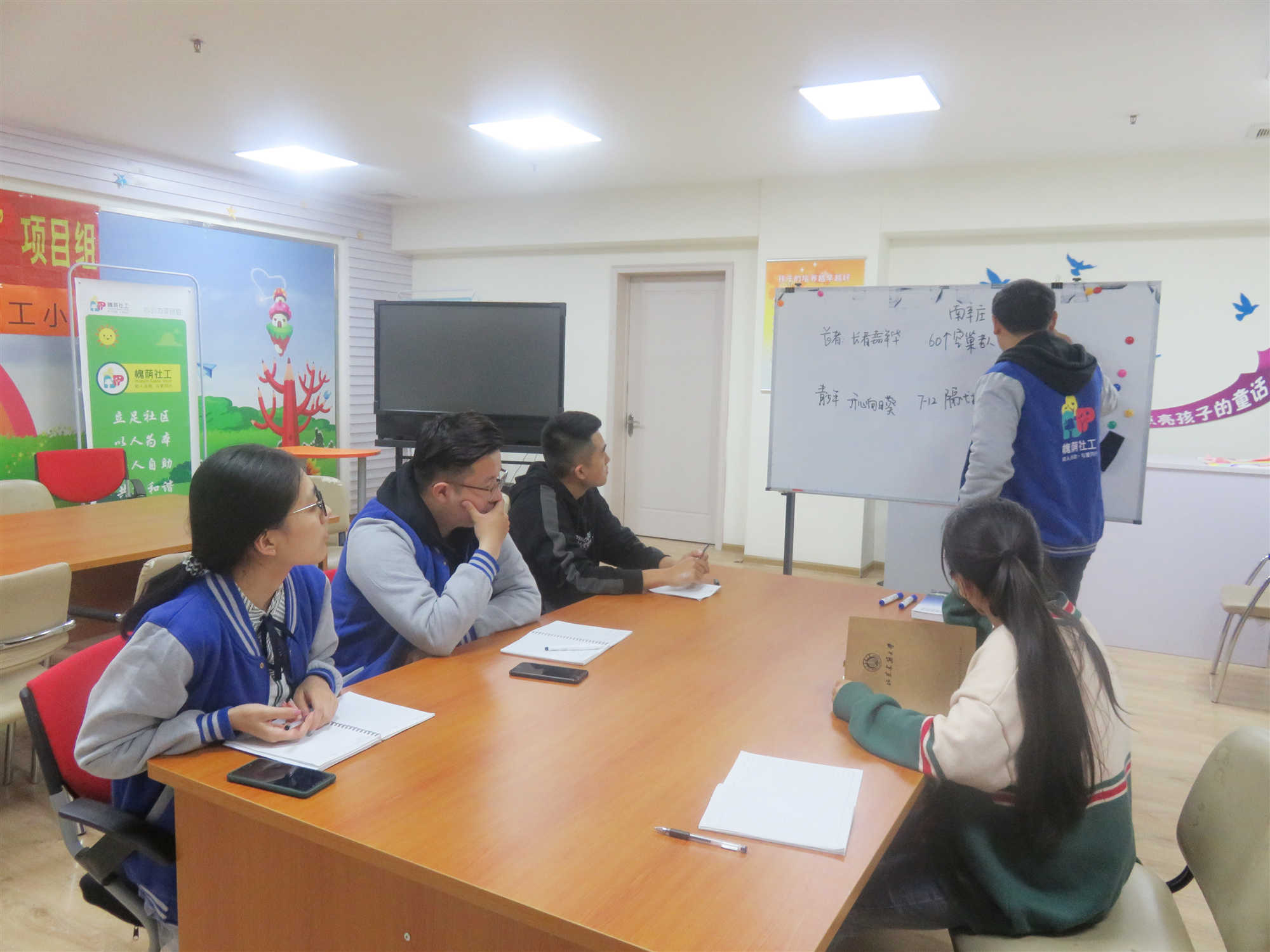 实习生初到项目,心引力项目组社工热情地带领实习生参观了项目组场地设施并对所开展的各项服务活动进行了简要介绍。参观结束后,项目组社工与实习生一起开展了实习生交流会会议开始,项目负责人马庆文向实习生介绍了心引力项目具体的项目内容及发展情况,对开展的服务及各项社区活动向实习生进行了细致讲述。交流会期间,项目组社工认真聆听了实习生对于实习过程的要求及期望并积极沟通形成相应的实习方案,然后项目组负责人又对未来两周的实习安排进行了初步规划。