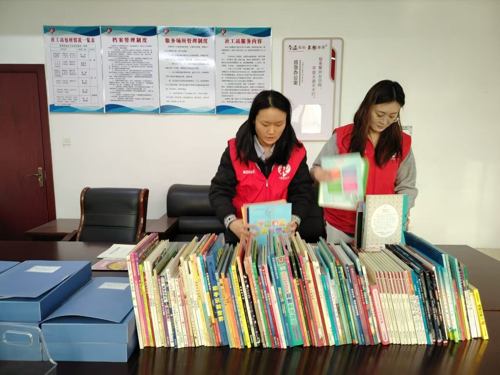精心整理。社工对捐赠的绘本进行了分类、整理与消毒,确保孩子们能够阅读到健康、完好的书籍。