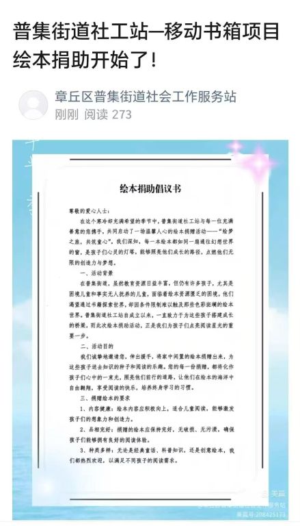 线上宣传。通过社交媒体平台,社工发布了项目的详细介绍、绘本捐助倡议书以及志愿者招募公告。一篇篇饱含深情的文章,一张张生动真实的照片,触动了无数人的心弦。