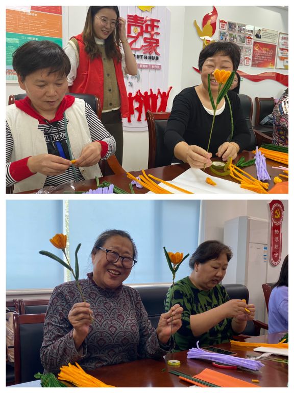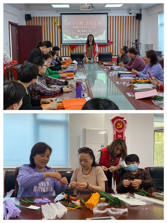 在传统节日重阳节到来之际,为大力弘扬中华民族尊老敬老的传统美德,丰富老年居民的日常文化生活,10月17日,鲍山街道社工站联合金河社区居委会开展 “朝夕同辉·共享花意”扭扭棒花束手工主题活动。