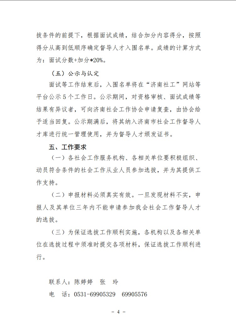 济南社会工作协会关于开展社会工作督导人才选拔工作的通知
