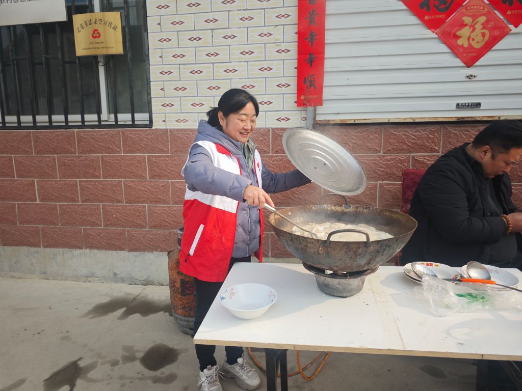 与此同时,另一边的包水饺活动也进行得如火如荼。大家分工协作,洗菜、切菜、调馅、擀皮、包饺子,忙得不亦乐乎。志愿者们纷纷展示自己的拿手技艺,包出的水饺形态各异,现场欢声笑语不断,充满了浓浓的邻里情。